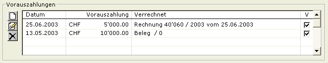 Ist das gewünschte Dossier gefunden, kann die Erfassung der Vorauszahlung wie folgt vorgenommen werden:
