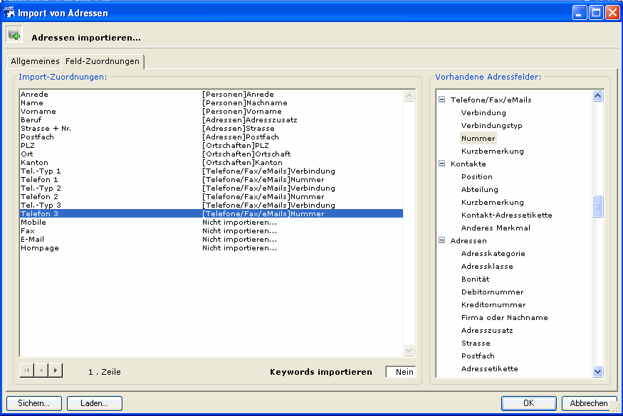 nachbearbeitet werden und zusätzliche Daten importiert werden, die Sie sonst im Standard-Import nicht vorausbestimmt haben. Beim Import ist der "Freie Import" zu wählen und die Felder zuzuweisen: