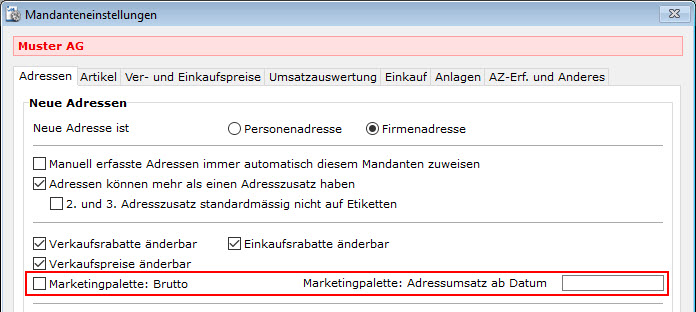 Bei Adressen, in welchen die Checkbox "Telemarketing: Brutto" (im Register Debitor)