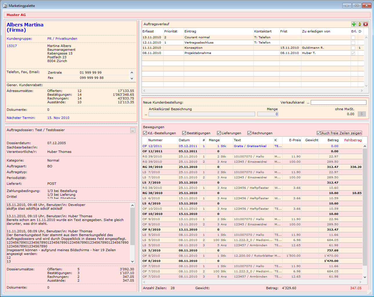 - Auftragsdossiers mit Bemerkungen