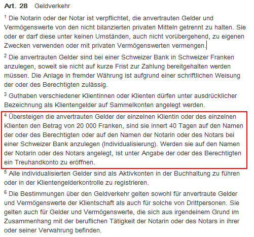 Art. 28 Abs. 4 Notariatsverordnung des Kantons Bern (40 Tage / CHF 20'000.--)