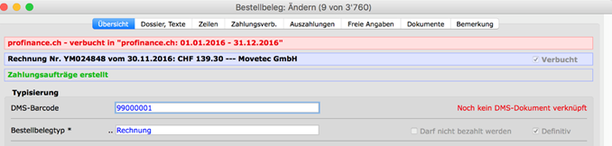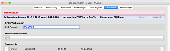 - Die Verlinkung der Barcodes mit den Dokumenten kann nun entweder manuell über jeden Beleg