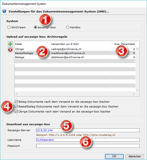 ACHTUNG: Wenn das Passwort in der Secasign-Box angepasst wird, muss das Passwort auch in bossERPangepasst werden.