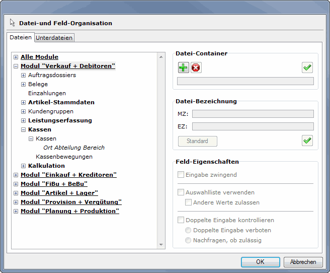 Ebenfalls via Optionen - Administration ist in der Datei- und Feldorganisation, Modul Verkauf + Debitoren, der