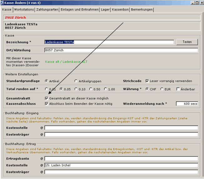 Einstellung gemacht werden. Gesamtrabatt an dieser Kasse möglich