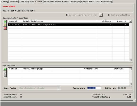 Rabatt auf dem Kassenbeleg prioritär übersteuert.