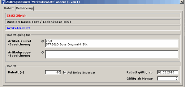 werden. Es kann aber auf dem Artikel der Rabatt hinterlegt werden.