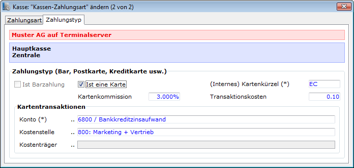In den Kasseneinstellungen können die Commissions und die Transaktionskosten eingestellt werden: