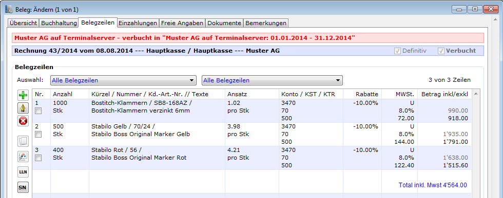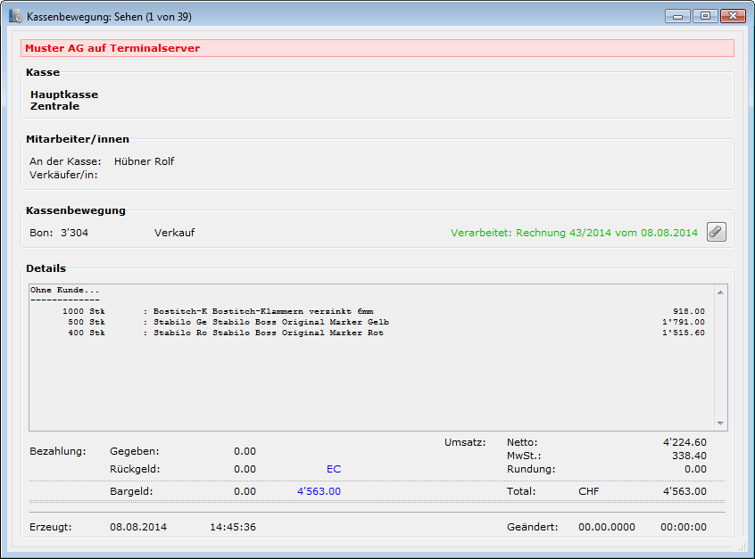 Kassenbewegungen, Kassenbelege + Kassenzahlungen