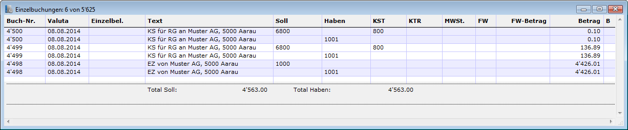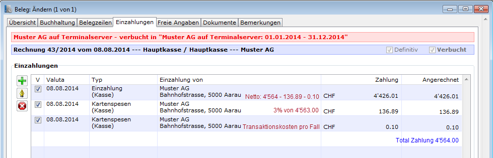 In den Kassenbewegungen werden die Card-Zahlungen wie folgt berücksichtigt: