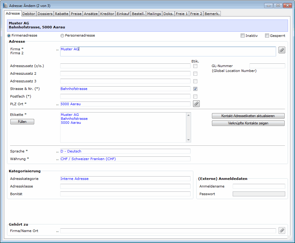 Aber beachte: den Sperrcode erst setzen, wenn im Kassendossier die Adresse zugewiesen wurde !