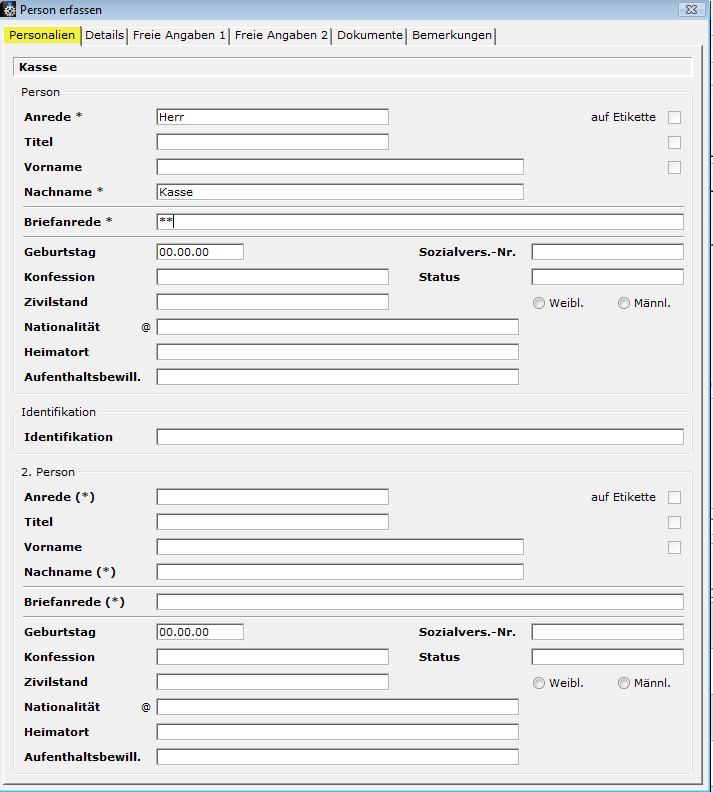 Stammdaten für Kassenmodul