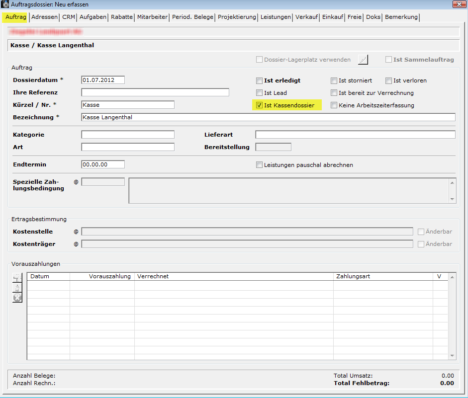(Kassen)Auftragsdossier