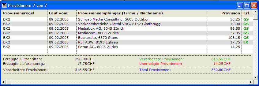 Übersicht Provision Dateien - Provisionen Abkürzungen: Erl Erledigungsvermerk GS durch Debitoren-Gutschrift LR durch Lieferanten-Rechnung Wie sortieren ? CTRL + B Symbole