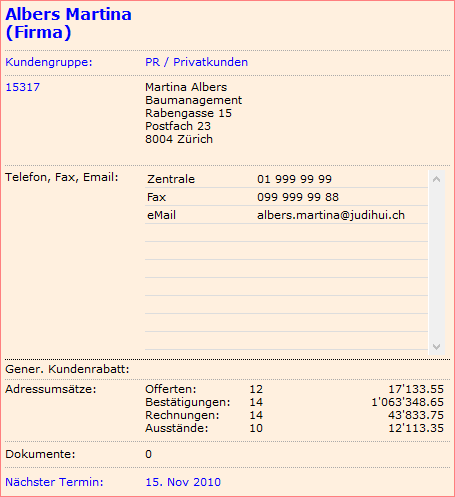 In der Adresse gibt es für das Telemarketing wesentliche Einträge:
