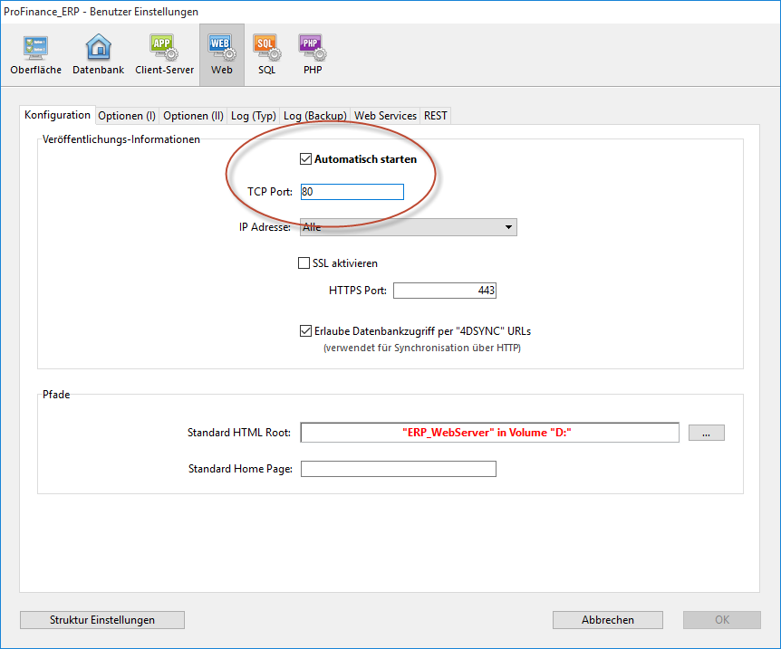 - der Web-Server gestartet sein (auf Automatisch starten setzen)