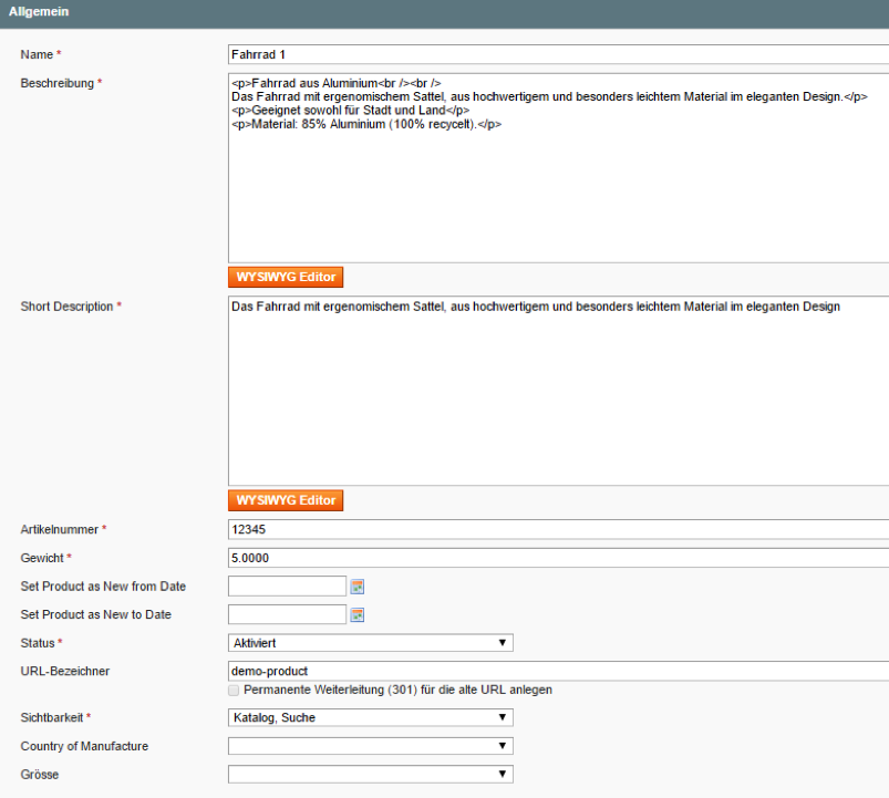 Im Folgenden wird kurz beschrieben wie ein Artikel in Magento geöffnet, geändert und gespeichert werden kann.