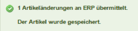 Nach dem Speichern erscheint die Meldung, dass die Änderung auch an Bossübermittelt wurde (falls der Webshop bei der Artikelverwaltung führend ist).