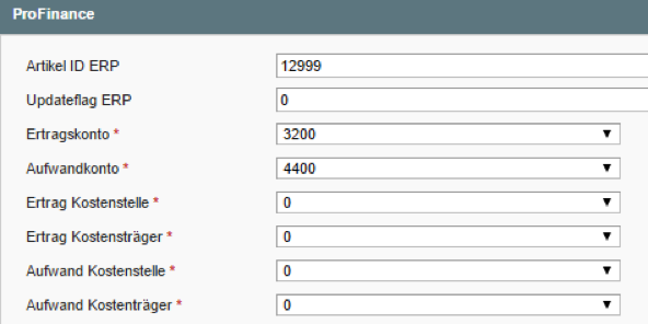 In der Navigationsliste findet sich beim Artikel der Punkt „bossERP“. Unter diesem Punkt sind die Fibu-Daten des Artikels zu sehen und können geändert werden.