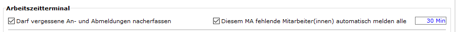 Generelle Einstellungen: siehe Mandanteneinstellungen - Register Arbeitszeiterfassung.