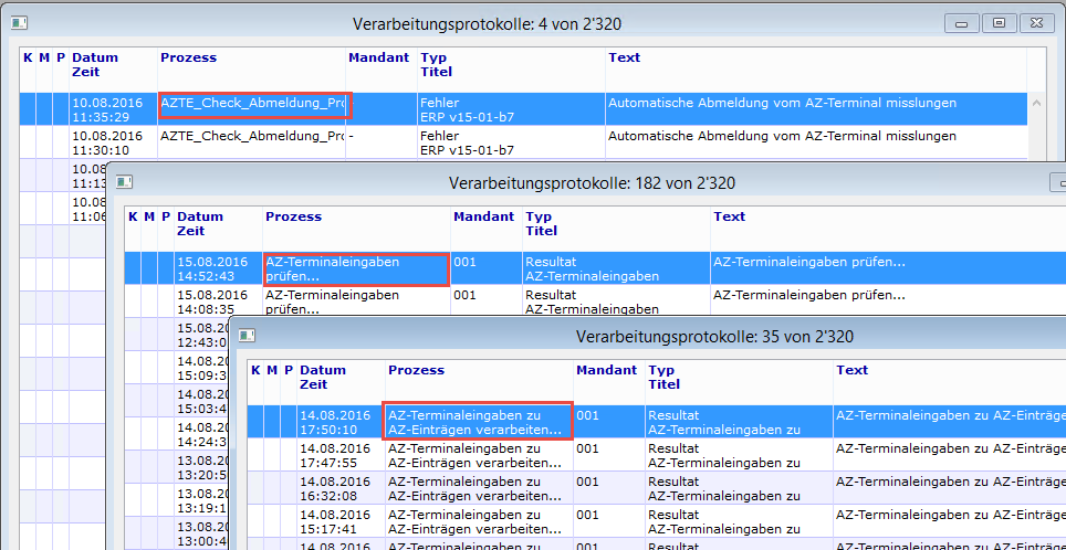 - AZ-Terminaleingaben zu AZ-Einträgen verarbeiten: Menüpunkt AZ-Terminaleingaben - Verarbeitungsprotokolle