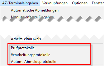 AZ-Terminaleingaben - Prüfprotokolle AZ-Terminaleingaben - Verarbeitungsprotokolle AZ-Terminaleingaben - Autom. Abmeldeprotokolle