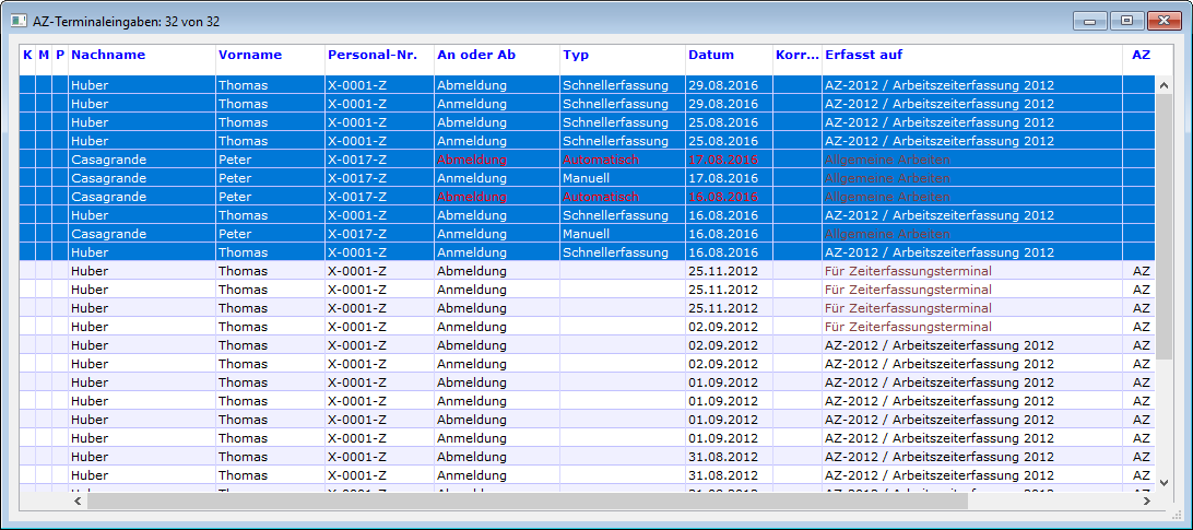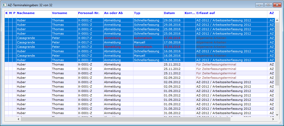 - In der Ausgabeliste werden sie nach der Verarbeitung mit "AZ" gekennzeichnet: