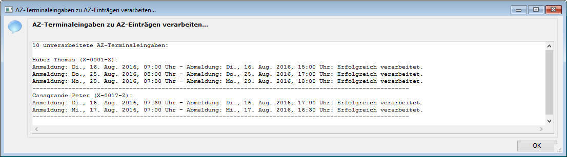 Bevor die AZ-Terminaleingaben zu Arbeitzeiteinträgen verarbeitet werden, müssen sie
