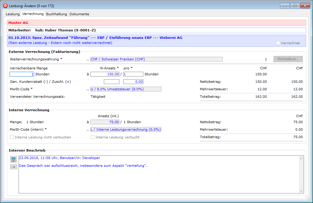 | Interne Leistung | Checkbox ob verbuchen oder nicht |