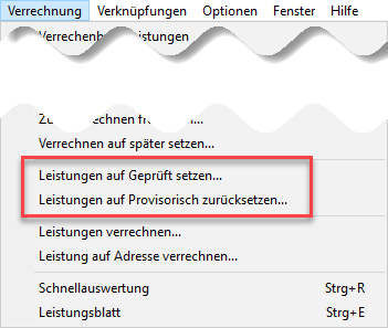 Leistungen - Verrechnung - Leistungen auf Provisorisch zurücksetzen