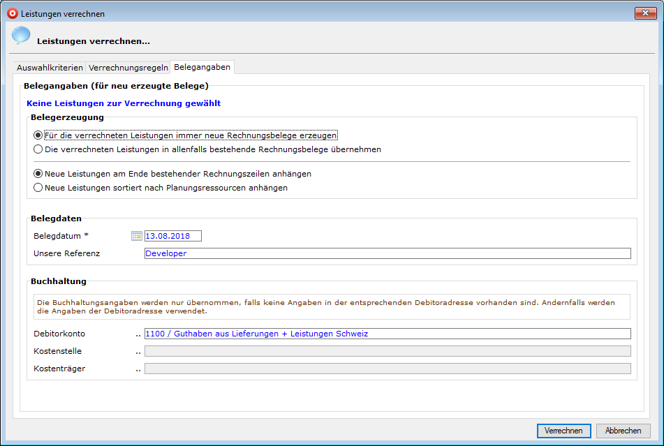 Es können unterschiedliche Vorgaben gewählt werden, welche auf die Belege gesetzt werden sollen. Es hängt davon ab, welcher Prozess abläuft.