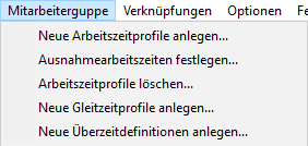 Ausnahme-AZ für MA-Gruppen festlegen Siehe dazu die Ausführungen unter "Ausnahmearbeitszeiten festlegen". Die dort beschriebenen beiden Varianten gelten auch hier.
