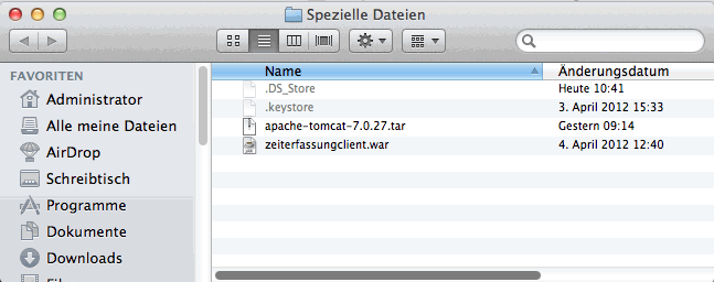 Aus dem Programmordner können Sie nun die Applikation ins Dock einbinden, um den Tomcat dann daraus zu starten und zu beenden.