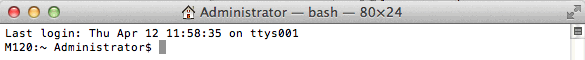 Es öffnet sich das Terminal-Fenster (hier auf der Maschine M120 und dem Benutzer „Administrator“) :