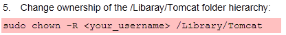 sudo chown -R <your_username> /Library/Tomcat