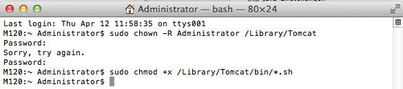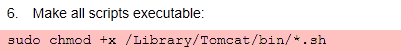 sudo chmod +x /Library/Tomcat/bin/*.sh
