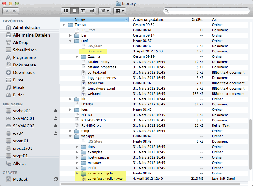 Konfiguration Tomcat unter Mac
